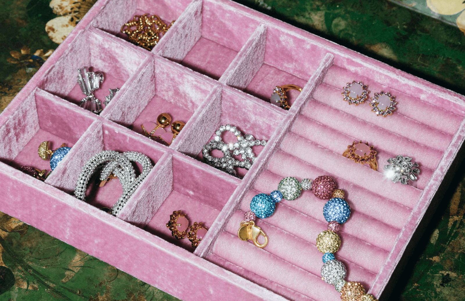Organizational enthusiasts and decorators alike love our signature hand-dyed silk velvet trays. Now available with dividers for even more storage options.
