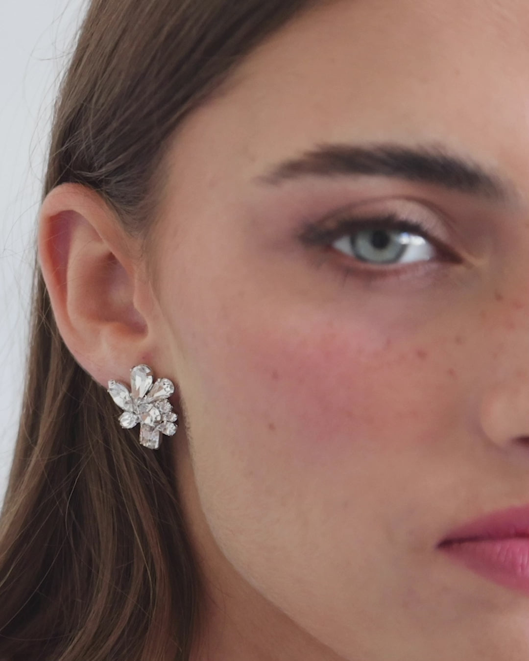 The Birdie Stud Earrings are a versatile, vintage-inspired pair for your jewelry box. These elegant earrings are crafted with hand-set crystal stones, a shiny silver finish over brass and surgical steel posts.