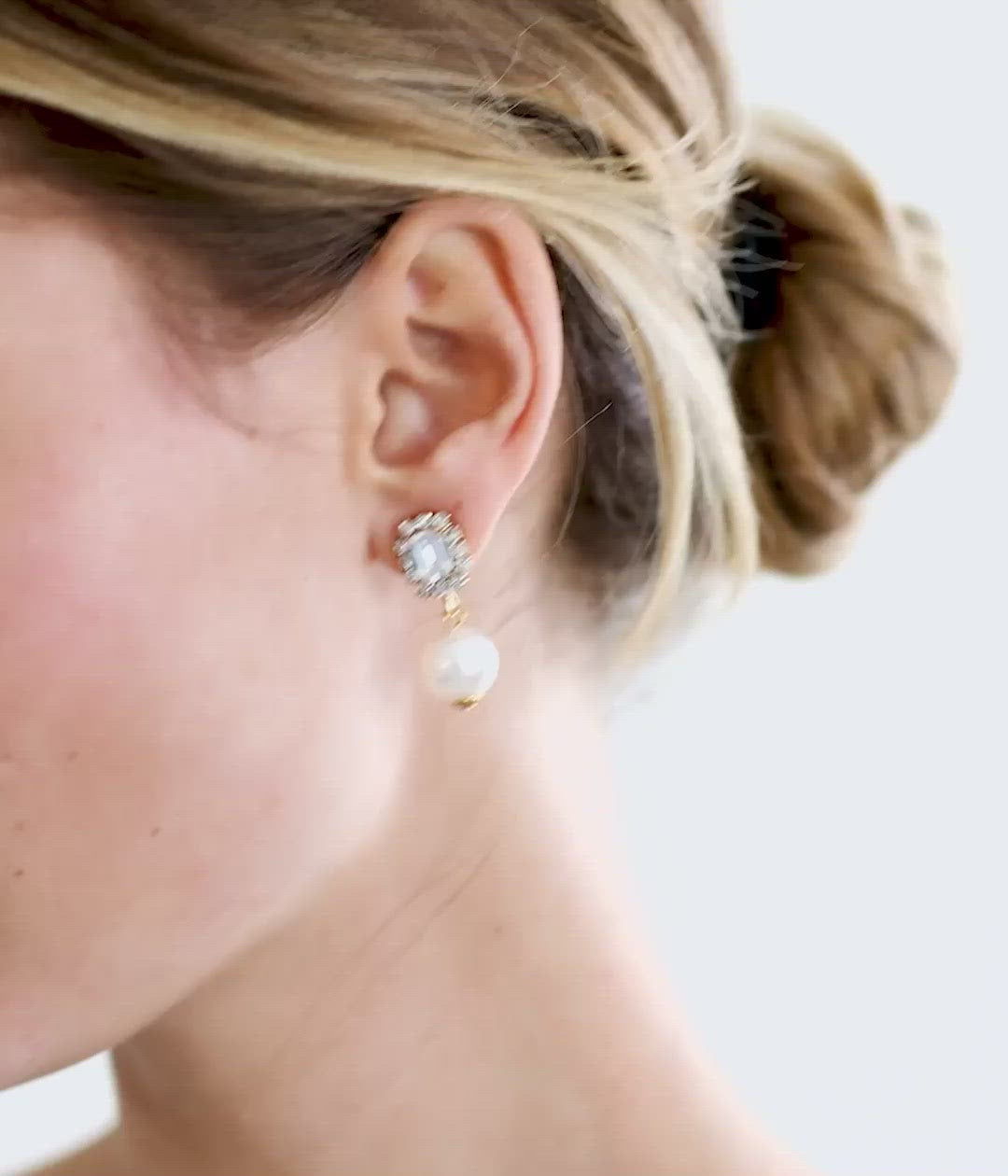 The grace that pearls bring are highlighted within the design of our Tatiana earrings. Be it bridal or brunch, the Tatiana earrings are fit for every fashionable woman. Features hand-set crystals, glass pearls, an 18K antiqued gold finish and surgical steel posts.